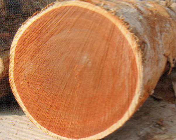 心邊材區(qū)别極明顯、心材暗紅褐色,略具(jù)深色條紋、邊材淡黃白色,厚3~4 cm。生長(cháng)輪略明顯。