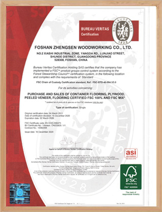 工(gōng)廠和産(chǎn)品都通過法國(guó)“BV”認證,“FSC”認證和中(zhōng)國(guó)“CCS”認證